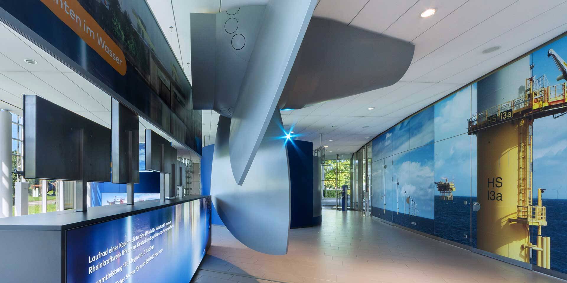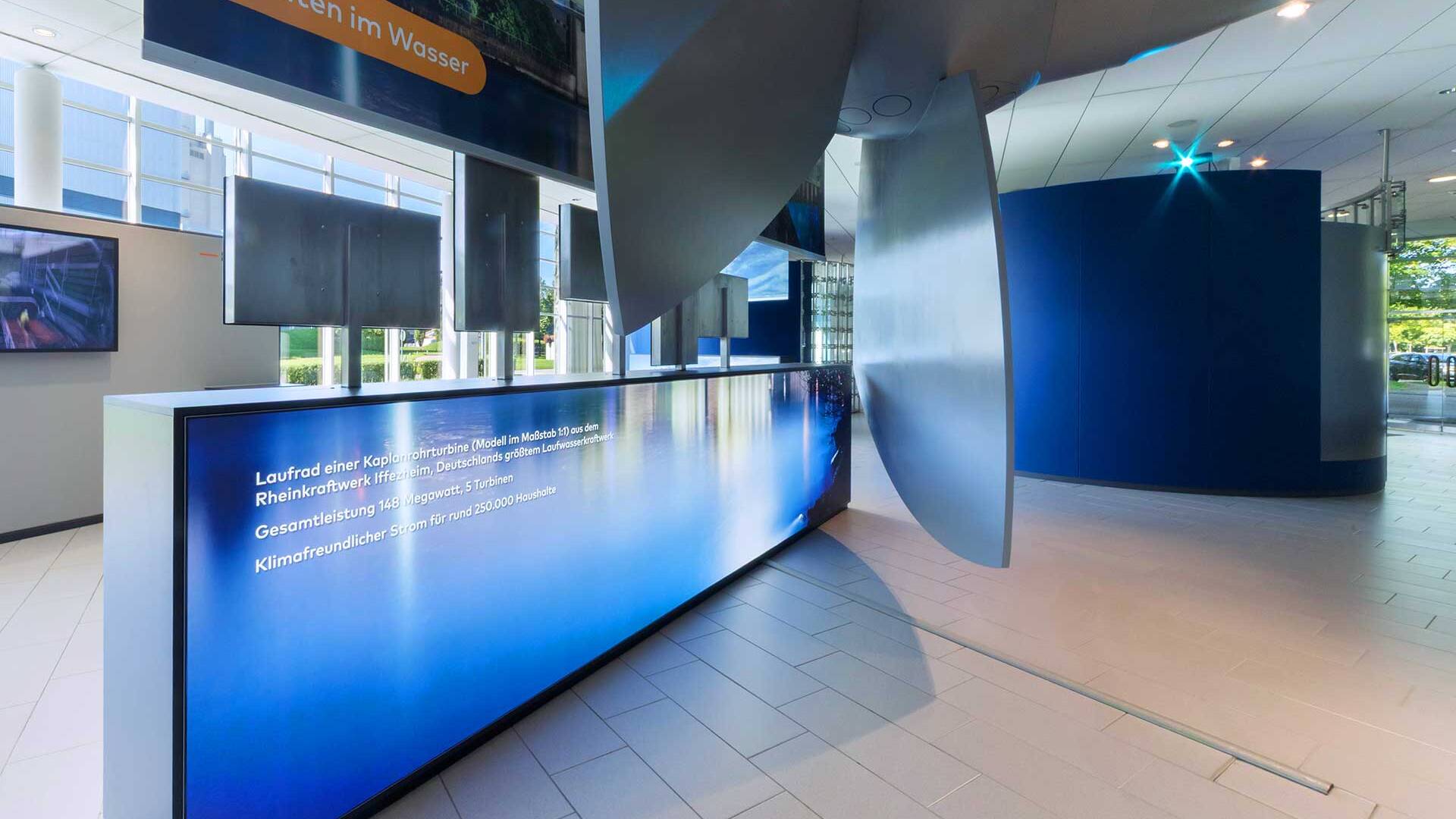 Die Themen – von der Kraftwerkshistorie über moderne Kraftstoffe und Dekarbonisierung bis hin zum Netzausbau – werden mit Multimedia-Elementen inszeniert und mit Video, Licht und Sound emotional aufgeladen. Ein Highlight ist ein 3D-Echtzeit-Spiel, in dem ein Energie-Blackout verhindert werden muss. Hand-on-Exponate machen Technik verständlich, während außergewöhnliche Real-Exponate wie eine Wasserkraftturbine Dimensionen erfassen lassen.