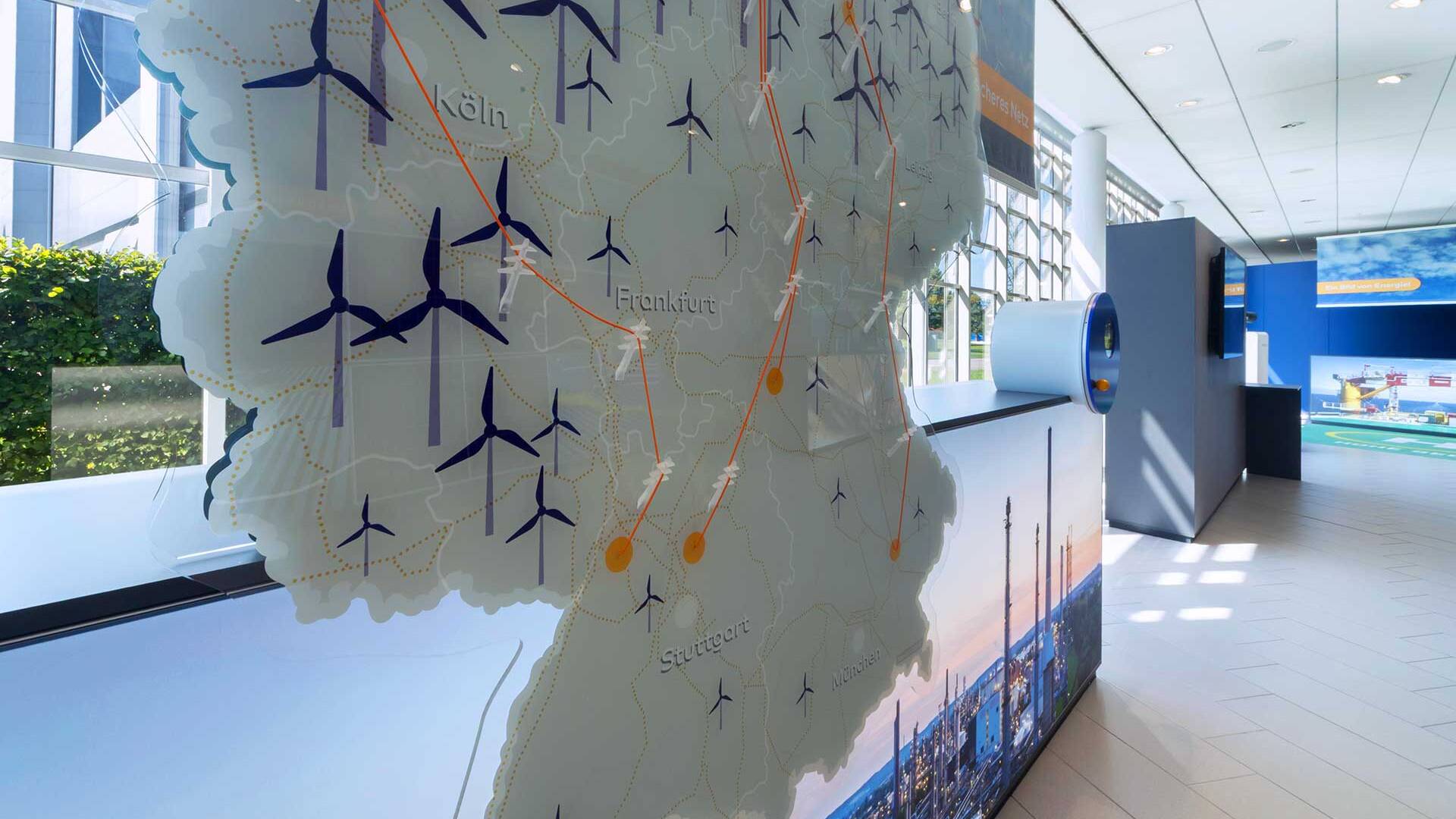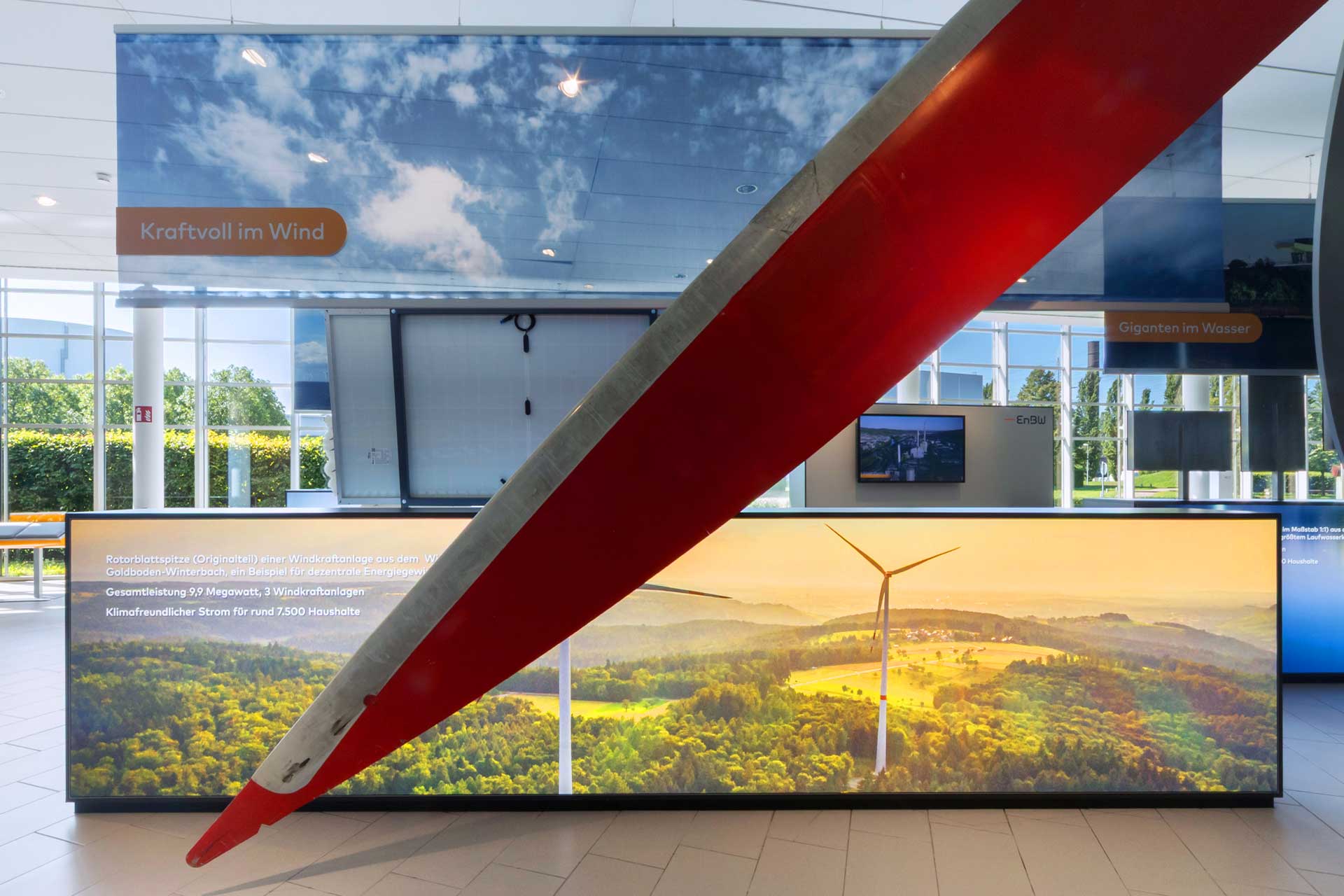 Mit der von FLAD & FLAD entwickelten Ausstellung beleuchtet EnBW die Transformation von einer fossilen zu einer nachhaltigen und zukunftsorientierten Energieversorgung. Auf 600 m² laden zehn Themeninseln zum Dialog ein und machen Inhalte wie erneuerbare Energien, Netzinfrastruktur und Versorgungssicherheit erlebbar.